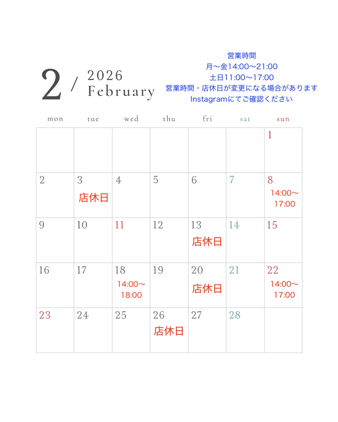 ご来店の際はカレンダーをご確認いただけるとスムーズです。